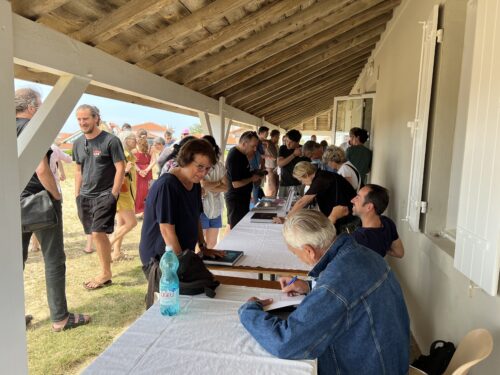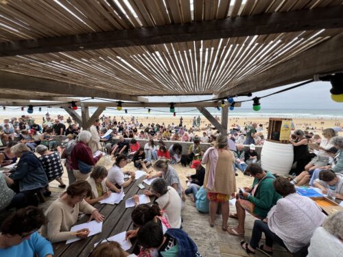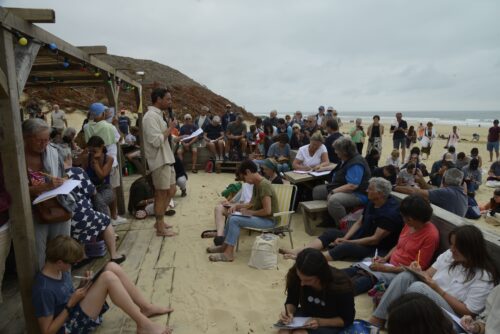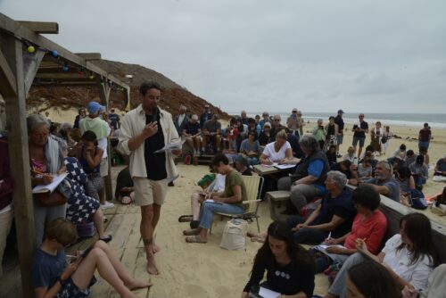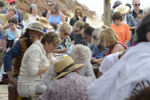 Dictée géante sur la plage